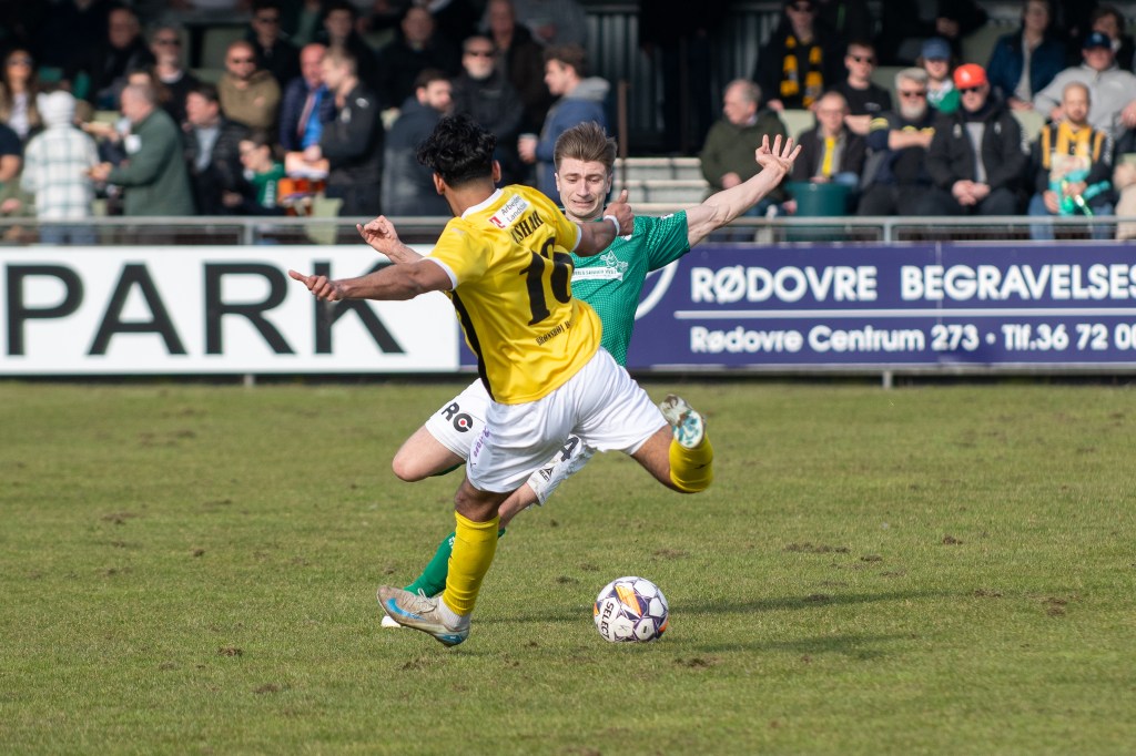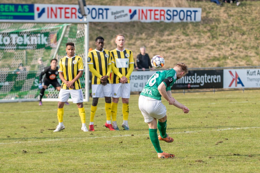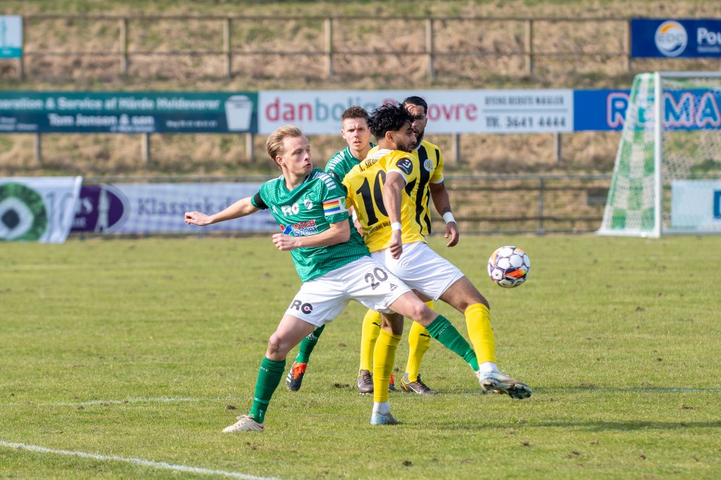Efter et minuts klapsalver til ære for den mangeårige Avarta-støtte Steen Skriver Rasmussen, som gik bort tidligere på året, fik vi sat gang i en første halvleg, som i forårssolen blev en meget låst affære fra begge holds side. Det blev i hvert fald langt hen ad vejen småt med chancer, hvor holdene i stedet lod til at se hinanden an uden for alvor at blive farlige. Aleksandar Lazarevic tegnede sig for de grønnes bedste forsøg inden pausen, mens Thomas Gall Kiani i Avarta-målet ikke fik meget at lave i løbet af de første 45 minutter plus tillægstid. Først da vi rundede minuttal 48 brændte det på oven på et Brønshøj-hjørne, og på endnu et hjørnespark minuttet efter, kom gæsternes Lukas Kiilerich først på et indlæg og sendte udeholdet i front, inden dommeren kunne fløjte til pause.