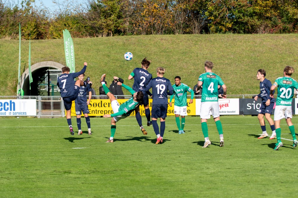 Kort inden pausen slog Avarta igen. Et hurtigt opspil i højre side endte hos #11 Nikola Bursac, som resolut sparkede bolden fladt i det lange hjørne til 2-0.