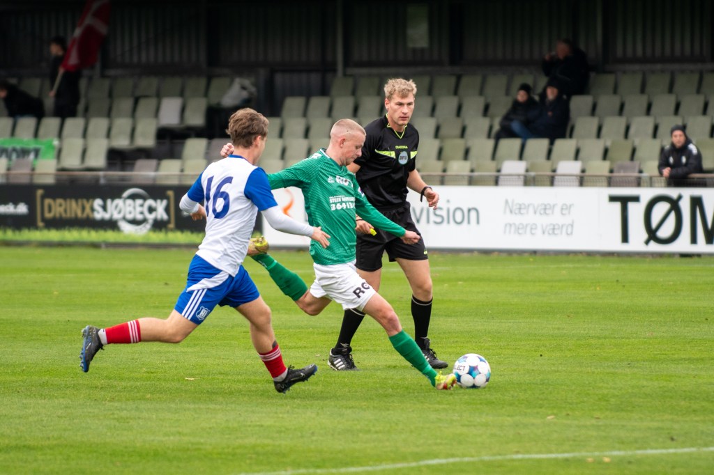 Duellerne var hårde, intensiteten høj, og dommeren kom tidligt i fokus. #21 Mounir Jamal Secka så gult efter 26 minutter — men han reagerede perfekt. Bare seks minutter senere fandt han plads i feltet og afsluttede sikkert til 1-0 efter flot forarbejde fra Avarta-offensiven. Et koldt og klinisk mål på et vigtigt tidspunkt.